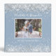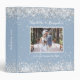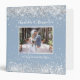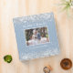 A dusty blue background, decorated with faux silver confetti. Personalize and add your name, wedding date and a photo.