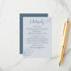 The wedding details are displayed in elegant fonts along a minimalist floral illustration against a light Dusty Blue background.