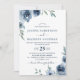 Dusty Blue Slate Floral Botanical Chic Wedding Invitation