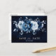 Dusty Blue Slate Navy Floral Wedding Save the Date Postcard