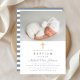 Dusty Blue Stripes Cross Photo Boy Baptism Invitation