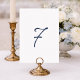 Featuring a hand-painted navy “7” on a clean white front, this table number balances artistic softness with timeless sophistication. The reverse side is finished with delicate watercolor French stripes in dusty blue, adding subtle texture while maintaining a polished and cohesive look.