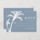 Dusty Blue Tropical Palm Tree Beach Wedding RSVP Card