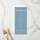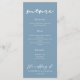 This dusty blue dinner menu exudes tranquillity for a summer coastal wedding by the sea. Personalize this light grey blue decor with elegant minimalist white typography to match your serene bridal colour scheme.
