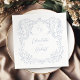 Elegant sketched vintage flourish frame with couple's monogram and stylish script font in dusty blue colour, modern and classy, great wedding napkins for modern classic wedding, luxe vintage wedding and romantic formal wedding.