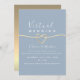 Simple, modern, minimalist dusty blue virtual wedding invitation with elegant gold foil rope heart. Perfect unique contemporary wedding invite.