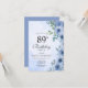 Dusty Blue Watercolor Floral Chic 89th Birthday Invitation
