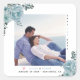 Dusty blue flowers and photo Save the Date photo sticker. A lovely design that showcases a photo, dusty blue flowers on the top left and bottom right corners, the text "Save the Date" in black and blue and a blush pink heart.