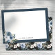 Elegant dusty blue and white watercolor roses with a seamless rose pattern on back with personalization text field.
