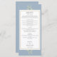 Elégante carte de menu mariage bleu botanique poussiéreuse personnalisée avec vos informations en typographie chic. Conçu par Thisisnotme©