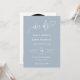 This invitation features an elegant "we do" calligraphy and simple sans serif typography font with an arch shape photo and QR code in a dusty blue background. The simplicity and clean design of this invitation works well with all wedding themes and definitely a great addition to your wedding.
