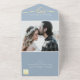 Modern and minimalist dusty blue all-in-one wedding invitation with elegant gold rope heart, clean typography, and space for RSVP, photo, and wedding details. A romantic and stylish design with everything in one piece! For help or customization, contact bpkolman@gmail.com.
