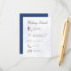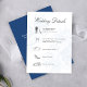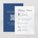 Elegant and modern, this dusty blue wedding details card features a graceful calligraphy “Wedding Details” header paired with a soft botanical floral background for a romantic, timeless feel. The clean layout includes a structured timeline with subtle wedding icons, making it easy for guests to follow your ceremony, reception, and evening events.