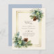 Beautiful Eucalyptus leaves and winter pine cones with dusty blue accents feature on this fall, autumn, winter wedding items. Part of a larger collection that includes budget wedding invitations, save the dates, RSVPs, thank you photo cards, bridal and wedding party gifts, and more. For a detailed FREE winter wedding planning, guide visit weddingdesignchic.com.