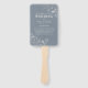 Elegant, botanical, vintage, floral dusty blue wedding program hand fans with periwinkle wildflowers lace and simple modern calligraphy script.