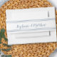 Complete your wedding invitation suites in style with our modern, minimalist dusty blue and white belly bands. Design features a double frame border in dusty blue on a crisp white background. Personalize wedding design with your first names in dusty blue script.