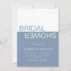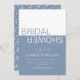 This bridal shower invitation presents a modern and playful aesthetic with its combination of dusty blue and white color blocks. The top of the invite is white while the bottom has a refreshing dusty blue shade. The word 'Bridal' is inscribed in dusty blue on the white block while the word 'SHOWER' is written in white on the blue block in an upside down fashion. The minimalist look is further enhanced by the use of a simple font. On the other side, the couple's initials in white are gracefully placed on a dusty blue background, making this invitation complete.