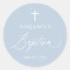 Dusty Blue White Cross Boy Baptism Round Sticker