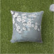 Dusty Blue White Floral Cherry Blossoms Throw Pillow