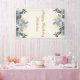 Elegant dusty blue and white roses, floral, and greenery women's birthday party "Happy Birthday" banner, formatted vertically. Personalized with the name of the guest of honour. Contact me for assistance with your customizations or to request additional matching or coordinating Zazzle products for your party.