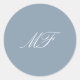Dusty Blue White Formal Classic Monogram Wedding Round Sticker