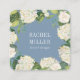 Dusty Blue & White Hydrangea Wreath Square Business Card