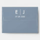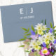 Elegant classic monogrammed envelopes in dusty blue and white with your initials and wedding date in traditional minimalist text.