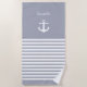 Dusty Blue White Stripes Nautical Personalized Beach Towel