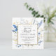 Hand painted watercolor floral bridal shower invitation featuring dusty blue, navy blue and yellow wild flowers with modern calligraphy script, digital gold foil frame and dusty blue colour in the back of the invitation. You can personalize the wording, font style, colour and size in front and back of the invitation. You are welcome to contact me for matching items.
