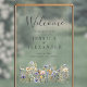 This Dusty Blue Watercolor Wildflowers Elegant 24x36 Wedding Welcome Acrylic Sign showcases delicate watercolor wildflowers in dusty blue, purple, and yellow on a clear acrylic sign, complemented by contemporary typography and script calligraphy. The formal design and wording will add a touch of elegance to your wedding celebration.