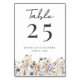 Dusty Blue Wildflowers Script Elegant Wedding Table Number