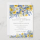 Bohemian romantic watercolor wildflowers design in cobalt and dusty blue with sunny bright yellows and whites. This wildflower watercolor design is perfectly suited for Spring or Summer weddings with a Semi-Formal to Casual-Chic vibe, ideal for Garden, Bohemian Chic, or Rustic settings that emphasize joyful, natural elegance and an atmosphere reminiscent of a sunny wildflower meadow.