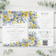 Bohemian romantic watercolor wildflowers design in cobalt and dusty blue with sunny bright yellows and whites.