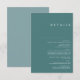 Ce Dusty Boho | La carte de boîtier de détails vert et bleu est parfaite pour votre mariage boho rustique coloré. Son design moderne simple et unique, accompagné de sa palette bleu poussiéreux et vert turquoise, donne à ce produit une ambiance bohème classique, simpliste et chic. Gardez-le tel quel, ou choisissez de le personnaliser avec des illustrations ou des graphiques de votre choix. Vous pouvez également chercher d'autres produits dans cette collection pour réunir votre mariage entier !