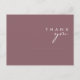 Ce Dusty Boho | mariage violet, merci carte postale est parfaite pour votre mariage boho rustique coloré. Son design moderne simple et unique, accompagné d'un script minimaliste contemporain et d'une palette de couleurs mauve violet, donne à ce produit une atmosphère bohème chic classique. Gardez-le tel quel, ou choisissez de le personnaliser avec des illustrations ou des graphiques de votre choix. Vous pouvez également chercher d'autres produits dans cette collection pour réunir votre mariage entier !