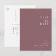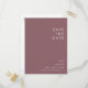 Cette carte postale "save the date" Dusty Boho violet est parfaite pour votre mariage rustique et bohème coloré. Son design simple et unique moderne accompagné d'un script minimaliste contemporain et d'une palette de couleurs violet mauve donne à ce produit une sensation bohème chic classique. Gardez-le tel quel ou choisissez de le personnaliser avec des illustrations ou des graphiques de votre choix. Vous pouvez également consulter d'autres produits de cette collection pour rassembler l'ensemble de votre mariage !