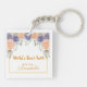 Set the tone for a soft romantic aesthetic with this personalized aunt keepsake keychain. It features a lush arch of purple and peach watercolor roses paired with a delicate gold frame rendered in a pastel lavender and apricot palette. This is the perfect way to celebrate a special occasion or a thoughtful gift for a beloved aunt.