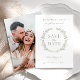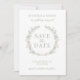 Experience sophistication with this elegant and modern rustic Save the Date invitation, adorned with watercolor greenery leaves and delicate white flower blooms arranged in a delicate wreath. Personalize the invitation further with a couple's photo included on the back.