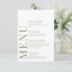 Enhance the charm of your romantic rustic botanical wedding celebration with this sophisticated and polished menu card. Featuring an intricate meadow wildflower blooms and dusty green calligraphy script, this beautiful design is elevated with personalization, showcasing the names of the bride and groom on the back.