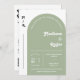 This groovy invitation features an elegant modern minimalist boho design with a retro font in an arch shape photo on the back and on the front of the card in a dusty green colour to give your invitation a modern and clean look. The simplicity of this design adds a touch of elegance to your wedding. It works well with many wedding themes and definitely a great addition to your wedding. Just customize the names and wording in a few easy steps and personalize the invitation card with your photo of the happy couple and replace the QR Code with yours on the back of the invitation to give your invitation a nice personal touch.