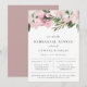 Watercolor floral arrangements in shades of dusty mauve and green, rehearsal dinner invitation. Chic and modern typography design. Back of card features solid dusty mauve colour.