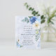 Design features a printed coloured with floral element in shades of dusty navy blue over greenery leaves and peony roses on a light blue watercolor background.. Great for your wedding celebrations!