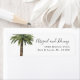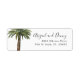 A unique palm tree themed set of address labels with a couple's home address and name in cursive style writing.
