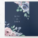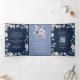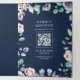 Dusty Periwinkle Pink Floral Navy QR Code Wedding Tri-Fold Invitation