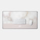 Custom-designed desk mat featuring modern dusty pink and marble design with personalized monogram.