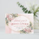 Elegant boho Quinceañera thank you card in blush pink and rose gold with floral eucalyptus greenery, perfect for expressing gratitude after a Sweet 15 celebration.