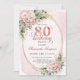 Dusty Pink Floral Gold Glitter Eucalyptus 80th Invitation