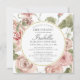 Dusty Pink Floral Gold Round Frame Christening Invitation