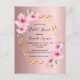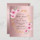 An elegant tropical summer bridal shower invitation. With a faux gold geometric frame decorated with light pink hibiscus, flowers tropical florals with some greenery. A blush pink faux metallic background.