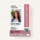 Dusty Pink ID Badge Photo Office Worker. Personalized accountant ID - an elegant identification badge with your QR code, photo, name, job title, and other details - if required.